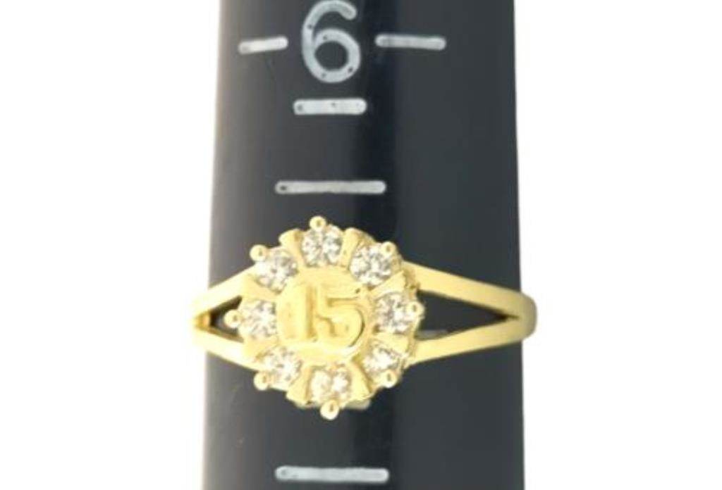 Anillo De Piedra Sintetica 15 Redondo 10k 1.7 Grs.